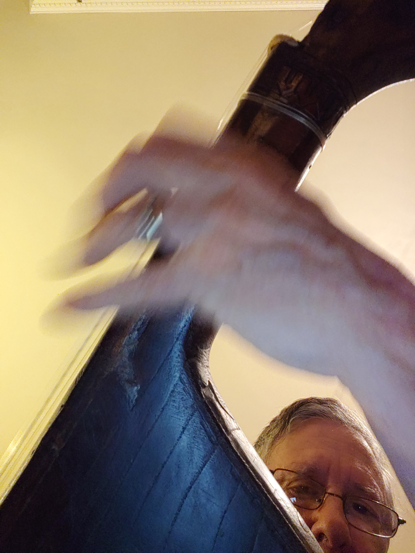 the older sarangi, older strings but restrung, as if a voice